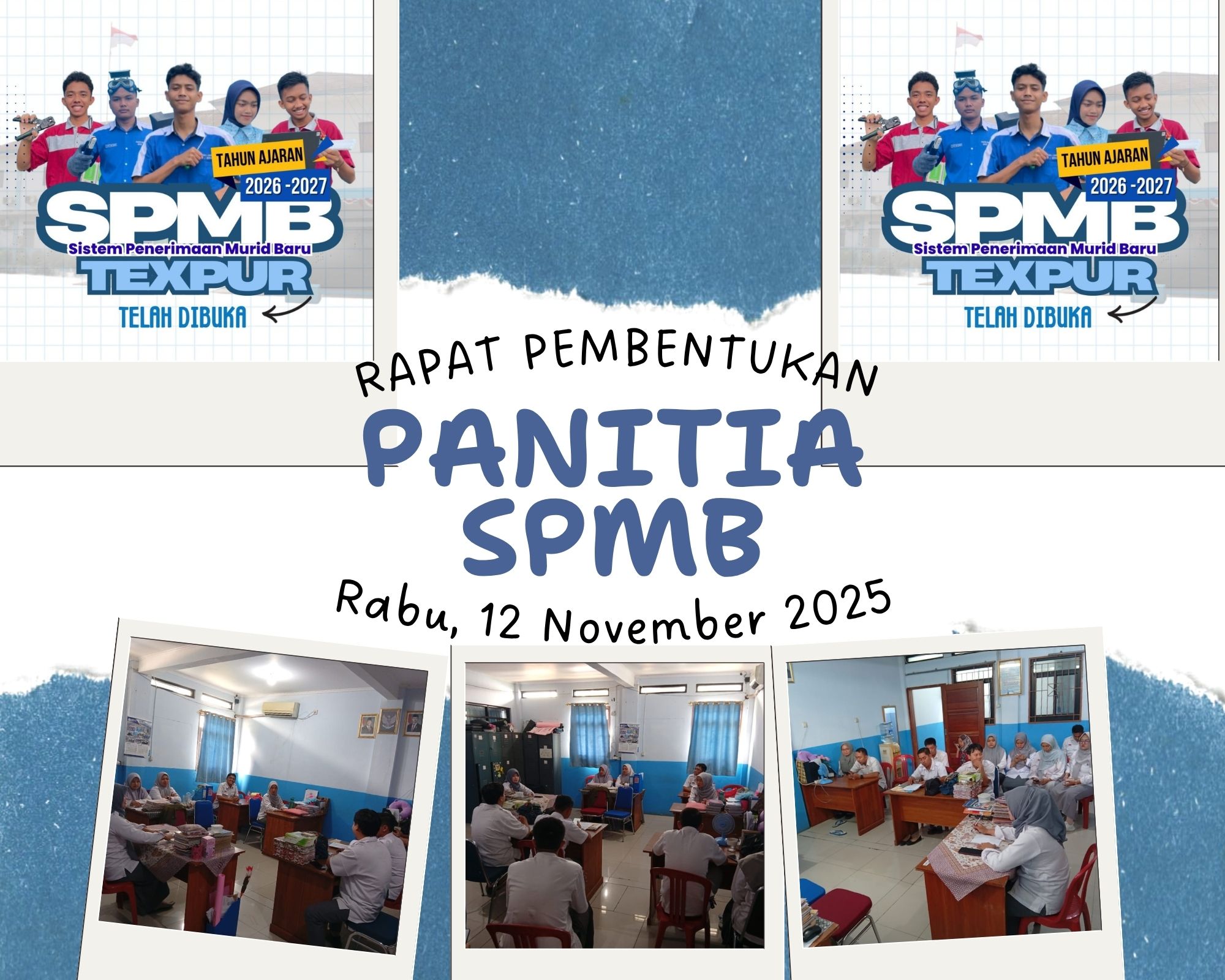 Setelah didapatkan hasil yang mufakat pada rapat terbatas, selanjutnya para personel pilihan di kumpulkan pada rapat pembentukan panitia. Pada rapat tersebut Kepala Sekolah bersama Ketua Pelaksana menyampaikan pandanganya untuk menyamakan persepsi dan menyelaraskan arah perjalanan team SPMB SMK Texmaco Purwasari agar dapat mengoptimalkan serapan sekolah. Pada sambutanya dalam pembukaan rapat ketua panitia SPMB Ridwan Kusumah Wijaya S.Pd., M.Pd. Gr. menyampaikan "Tahun lalu penerimaan murid baru kita kurang optimal karena perubahan konstelasi kebijakan pemerintah ditengah perjalanan SPMB sekolah, tentunya kita paham hal itu dilakukan untuk kebaikan masyarakat dan perkembangan kualitas pendidikan sekolah. Untuk menyikapinya kita perlu memperbaiki kesiapan, kualitas serta kepercayaan publik terhadap sekolah".